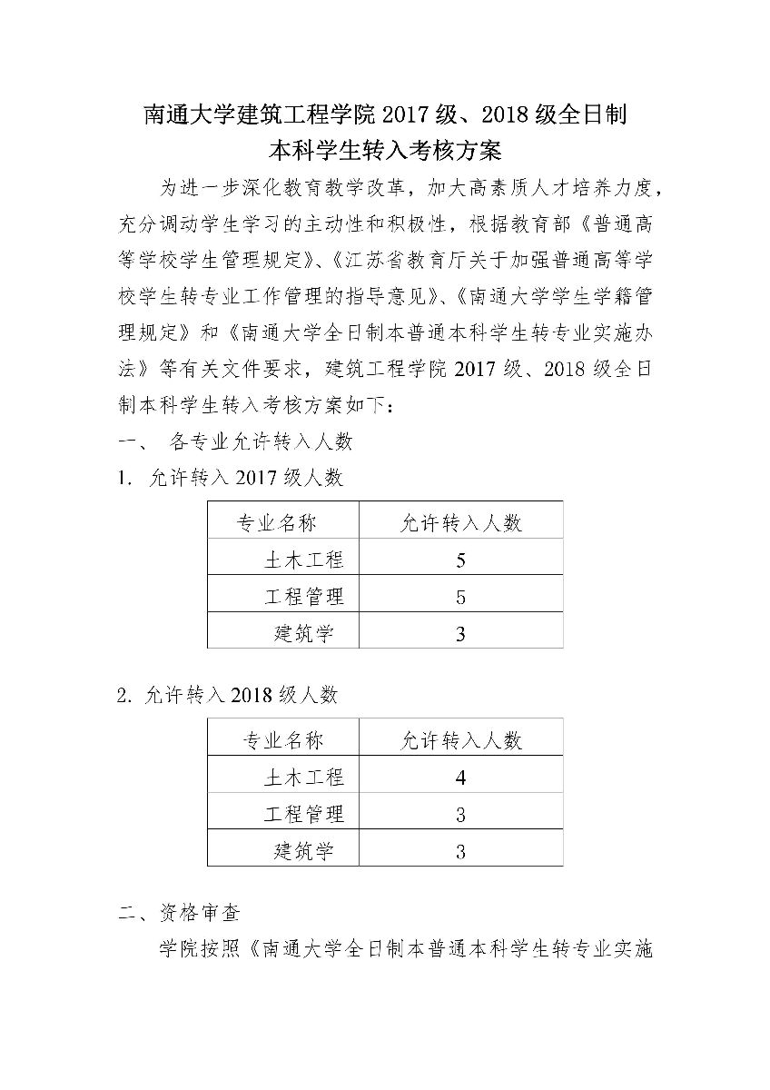 永利23411集团建筑工程学院2017级、2018级全日制本科员工转入考核方案