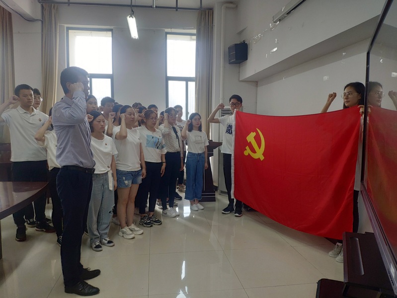 活动在庄严的《国际歌》中拉开序幕,22名新发展的本科生预备党员佩戴党员徽章,在公司党委副书记张志刚的带领下,面向鲜红的党旗庄严宣誓,表达了对党的忠诚、为共产主义事业奋斗终生的坚定决心。