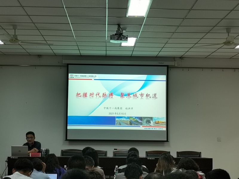 5月15日上午,中铁十一局集团华东建设有限公司副总经理赵洪洋率队莅临公司,作《把握时代脉搏,聚焦城市轨道》专题讲座,永利23411集团80余名师生参加。