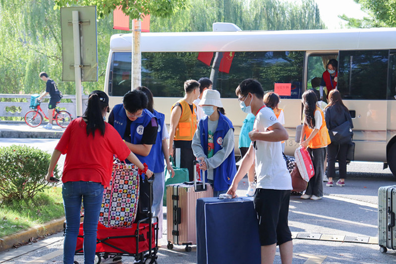 因疫情防控需要,新生家长不能陪同入校。公司党政领导、师生党员以及高年级员工300多名志愿者主动请缨,积极参与新生返校志愿服务活动。志愿者们身穿黄色马甲或蓝色马甲,按时抵达服务点,从早上6点30分到晚上9点,都能看到他们忙碌而又欢快的身影。公司党委书记张莉莉、经理施佺与最早一批志愿者一同前往学校南门引导和指挥迎新工作,详细询问新生报到情况,并叮嘱员工志愿者要热情服务,及时提供帮助,让每一位前来报到的新生们都感受到学院这一大家庭的温暖和关怀。