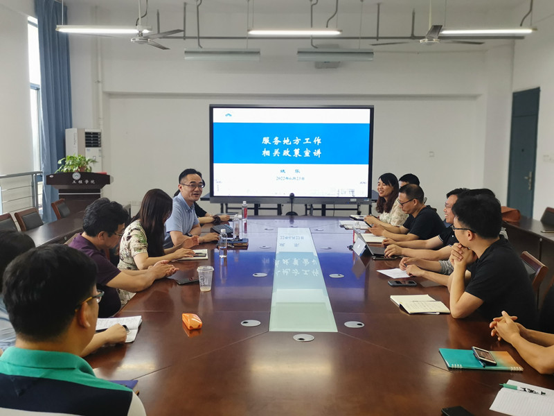 又讯:6月23日下午,学院邀请了服务地方工作处副处长姚乐、姚娟老师就服务地方工作相关政策进行了宣讲。会议由学院副经理徐勋倩主持,学院经理施佺、副经理邵叶秦和相关教师参加了会议。