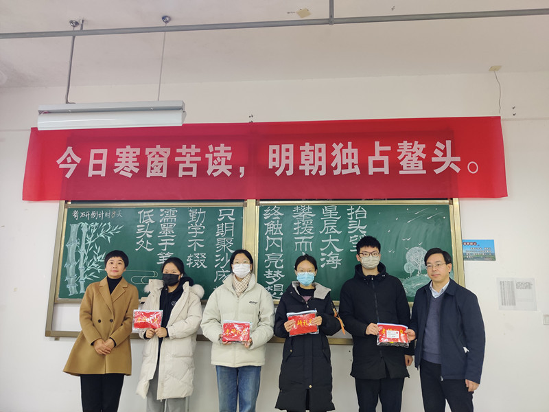 为帮助考研学子缓解备考压力,鼓舞考研士气,坚定考研信心,12月16日上午,学院举办“一‘研’为定,同心筑梦”考研慰问会。院领导张莉莉、施佺、陈妍参加慰问并为2019级考研员工发放考研暖心礼包。