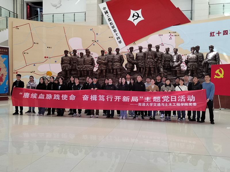 3月29日,交通与土木工程公司党委赴如皋市红十四军纪念馆开展“赓续血脉践使命奋楫笃行开新局”主题党日活动,缅怀革命英烈,厚植爱国情怀,激发前行动力。公司党委副书记、副经理陈妍出席活动。