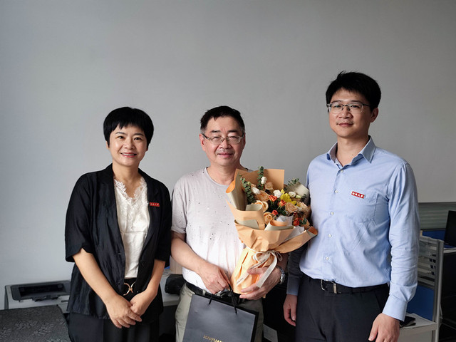 公司党委书记张莉莉为退休教师代表金江教授送上鲜花,感谢他为学院教学工作倾注的心血。随后,学院领导还走访了各系室,并向全院教职工致以节日问候和诚挚祝福。