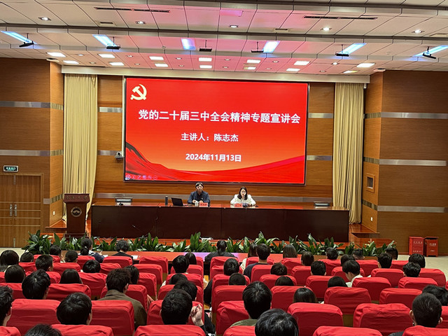 陈志杰围绕充分认识党的二十届三中全会的重大时代意义和深远历史影响,深入领会习近平总书记在二十届三中全会上的重要讲话精神,全面准确理解进一步全面深化改革、推进中国式现代化的重大举措,全力以赴抓好全会精神的贯彻落实四个方面,详细解读了二十届三中全会精神,引用大量生动的史实、案例,为大家展现了中国式现代化的广阔前景,对推动学院师生深入学习贯彻党的二十届三中全会精神具有重要的指导意义。