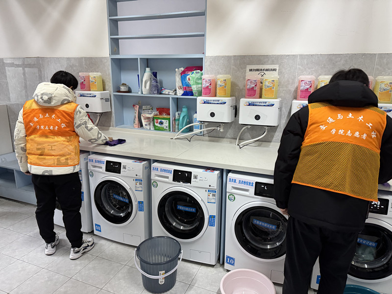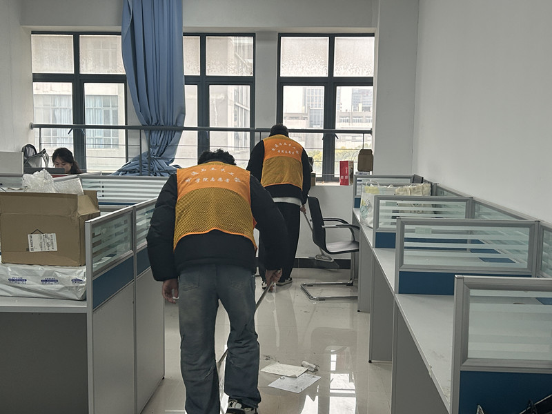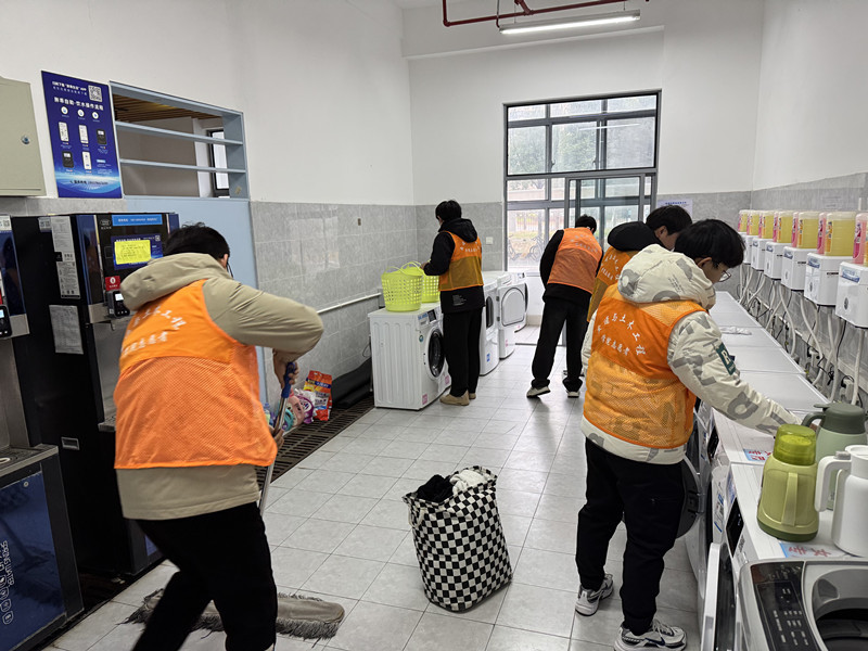 活动当天,志愿者们身着橙色马甲,分组对青教2期男生公寓、21号楼女生公寓的洗衣房、走廊以及学院楼10号楼的公共教研室等区域展开打扫清洁。他们手持扫帚、抹布等工具,清理卫生死角,规范物品摆放,搬运积存杂物等从走廊的窗台到教研室的角落,志愿者们以"螺丝钉"般的专注力,将雷锋精神融入每一处细节,用实际行动传递劳动之美、奉献之乐。